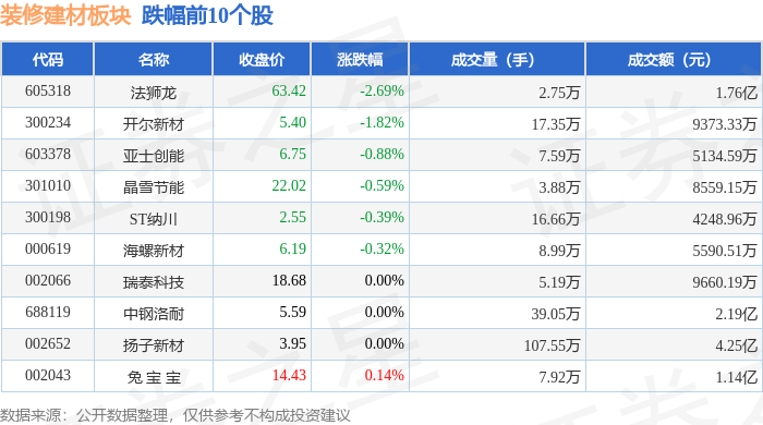 拆建筑材板块个股涨跌见下表: